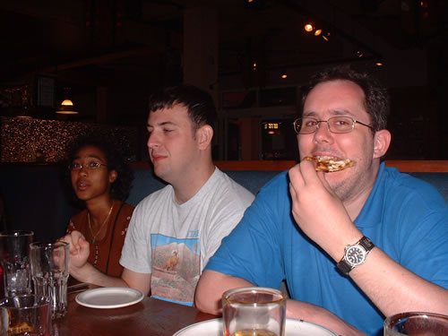 Demon Slayer enjoys pizza while Vern wonders if he's eaten too