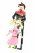 Riker proceeded to push Mezoti out of bed and show her to her dress. "Put it on quickly! I'll be in the corridor" he said. Mezoti stumbled out of the room fully dressed but slightly disheveled just moments later. Riker straightened her hair, put a clip in it, and dragged her all the way to Ten Forward.