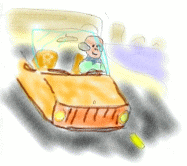 They soon reached a road along the beach, and slowed down a bit. The speeder was making large sand clouds, causing Lobot's head-computer to malfunction. He blinked and twitched, the car swerved and dodged. Guinan grabbed hold of the handles and her seat belt, but decided it was better that she solve his problem. She removed her big purple hat, and covered Lobot's head and head-computer with it, preventing any more sand and dust from entering. The last few particles spat themselves out, and Lobot drove on in prime condition.