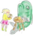 She scooped her puppy up, and found a fishlike patron sitting near the band. She held the puppy out, upside down, and asked the guppy dude to eat her puppy. He refused, so she fed the guppy dude to her puppy. Then her puppy got sick all over the floor, but because it was winter, it froze really fast. Little Mez slipped on the floor, and down she fell, puppy and all! Her puppy ran off around the bar. Wuher stepped toward a patron to hand him a beer... *crunch* he stepped on little Mezoti's puppy! Oooh boy that was bloody. All over his new shoes! Poor Wuher. He yelled at Mezoti, and banished her from his cantina, at which point she went outside and cried in the snow. Boy, is he ever mean.