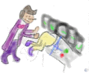 Vic was found sitting in his control room, playing with his switches and replicating dwarf ale, glass by glass. Rubicon watched in awe as each mug shattered on the floor. She lept for the off switch, but it was covered in bubblegum! Vic saw her fidgeting with it, and told her that Lobot had stuck his gum there so that Vic couldn't be turned off. She ignored the hologram and softened up the gum the best way she knew how, in hopes of saving the hologram from himself! Finally the gum came off, all of it, and she saw that Lobot had covered up more than the switch. He had covered up a hole in the panel! She stuck her hand in to see how deep it went, and something grabbed it! She screamed as she was pulled into the circuitry by none other than the boogeyman!